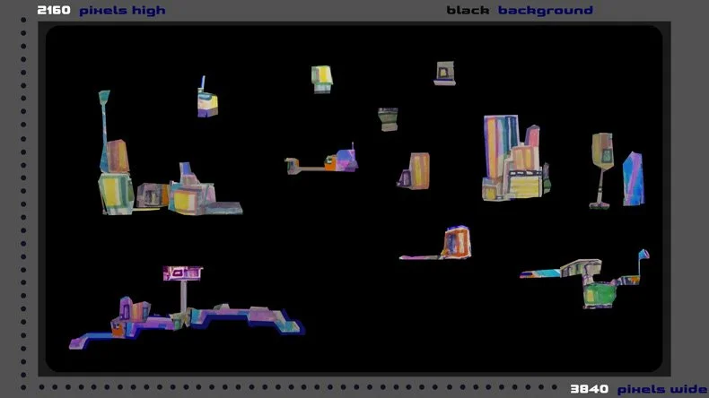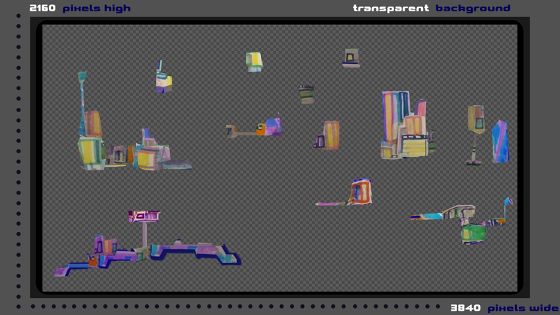 Lower Image: 4K Res. artwork with a solid black background for rhythmic imagery changes.